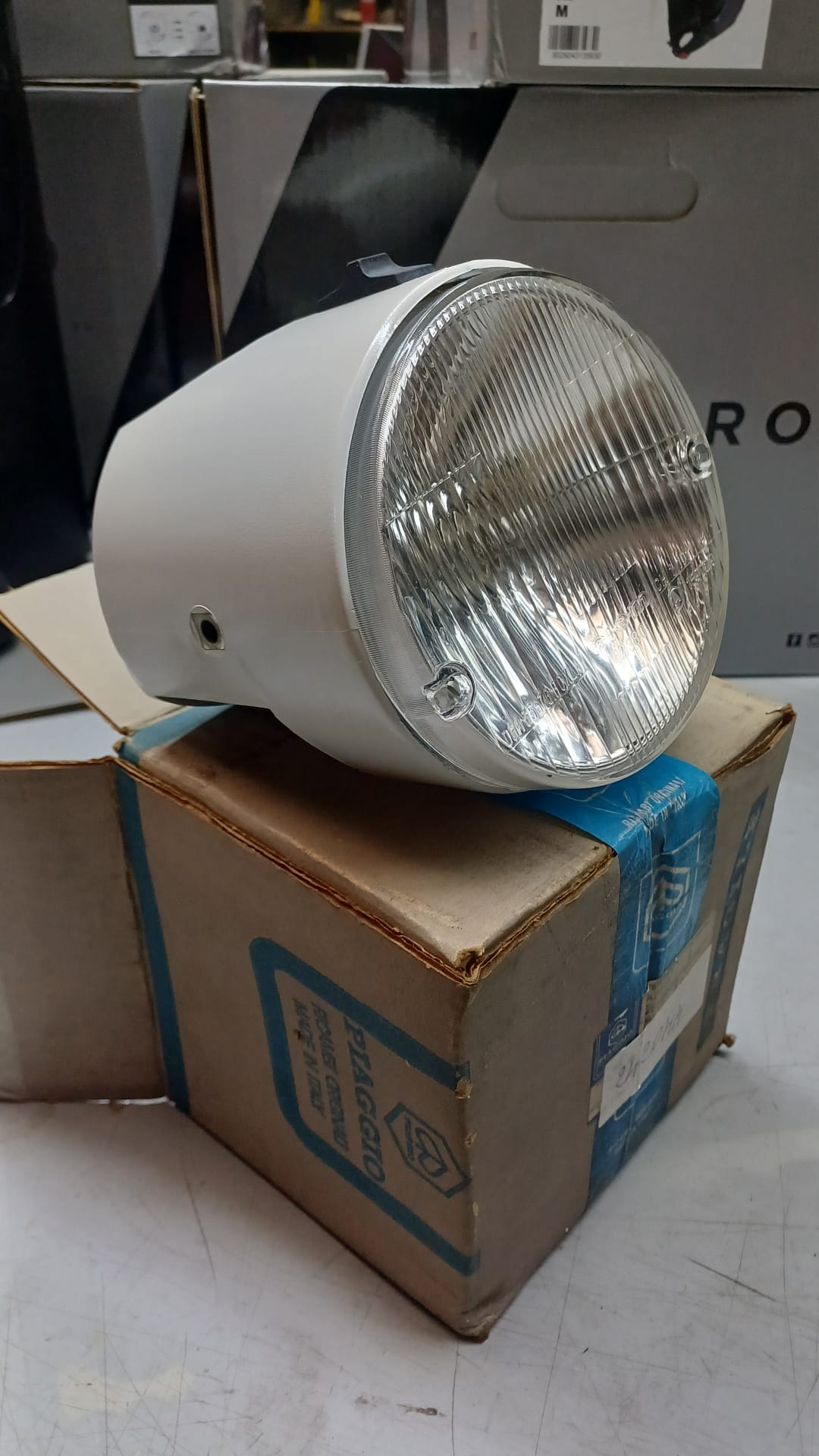 IL PROIETTORE COMPLETO ORIGINALE PIAGGIO 242044 RAPPRESENTA IL RICAMBIO AUTENTICO PER IL RESTAURO E LA MANUTENZIONE DEL LEGGENDARIO CICLOMOTORE PIAGGIO SI CON SCOCCA BIANCA. QUESTO GRUPPO OTTICO ORIGINALE GARANTISCE PRESTAZIONI E AFFIDABILITĄ IDENTICHE AL COMPONENTE DI PRIMO EQUIPAGGIAMENTO.