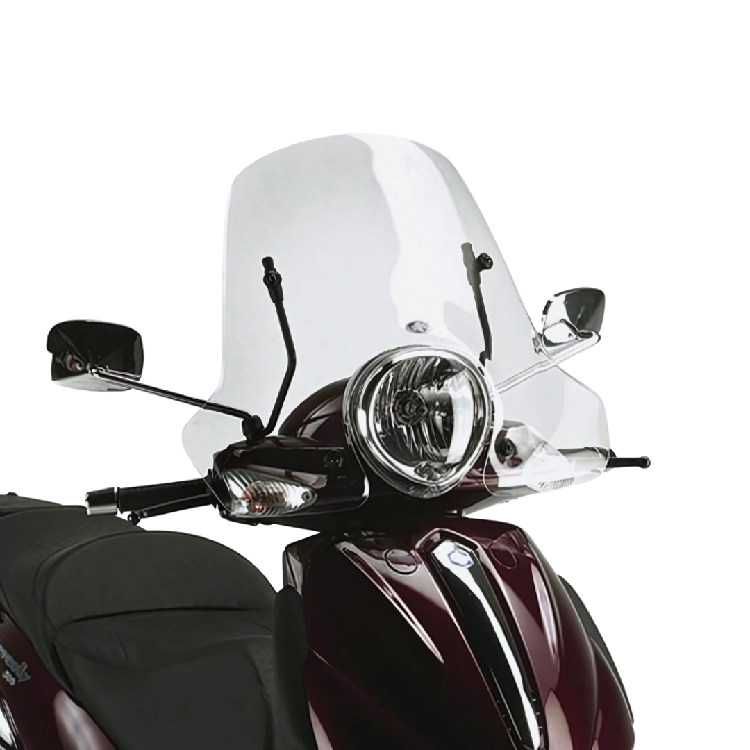 IL KAPPA MOTO 102A È UN PARABREZZA TRASPARENTE PROGETTATO PER OFFRIRE UNA PROTEZIONE EFFICACE DA VENTO E PIOGGIA SU SCOOTER PIAGGIO BEVERLY 125-200 E ALTRI MODELLI COMPATIBILI, GARANTENDO COMFORT E SICUREZZA SU OGNI PERCORSO.