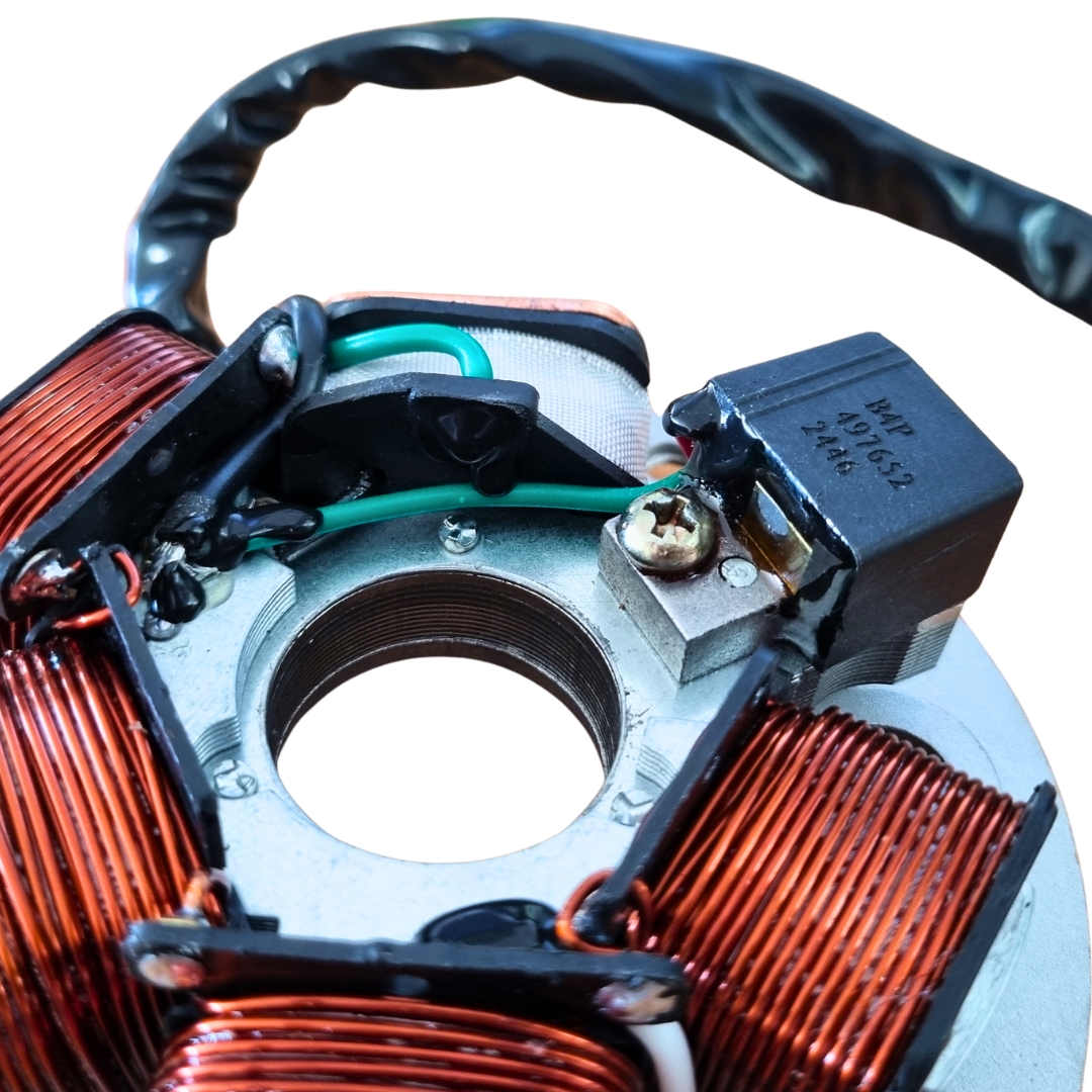 IL STATORE PIAGGIO ORIGINALE 5 POLI CON PIASTRA (CODICE PIAGGIO: 497652) È UN RICAMBIO AUTENTICO PROGETTATO APPOSITAMENTE PER LA SERIE VESPA PX E GARANTISCE AFFIDABILITÀ, DURATA E COMPATIBILITÀ PERFETTA CON I MODELLI DI RIFERIMENTO. QUESTO SUPPORTO BOBINA STATORE È FORNITO NELLA CONFEZIONE ORIGINALE PIAGGIO, MUNITO DI CODICE A BARRE E TALLONCINO IDENTIFICATIVO PER ASSICURARE L?ORIGINALITÀ DEL PRODOTTO.