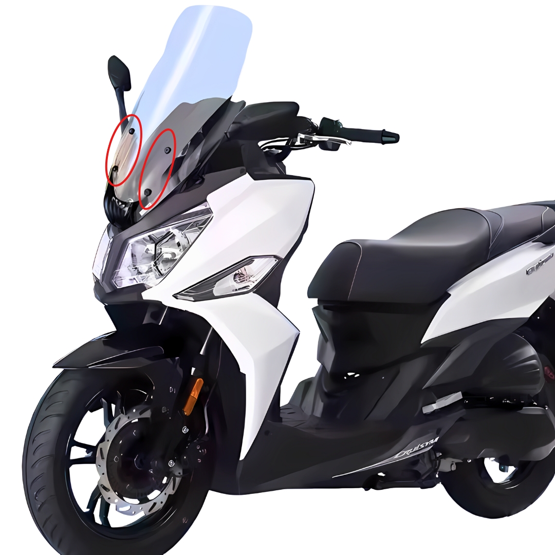 PERMETTE IL FISSAGGIO SICURO E STABILE DI PARABREZZA DEDICATI KAPPA MOTO (CODICI 105A E 128A, TRASPARENTI, FINO A 66 X 67 CM E 74 X 67 CM) SUL MANUBRIO E LA CARENATURA SUPERIORE DELLO SCOOTER SYM HD2 125/200.