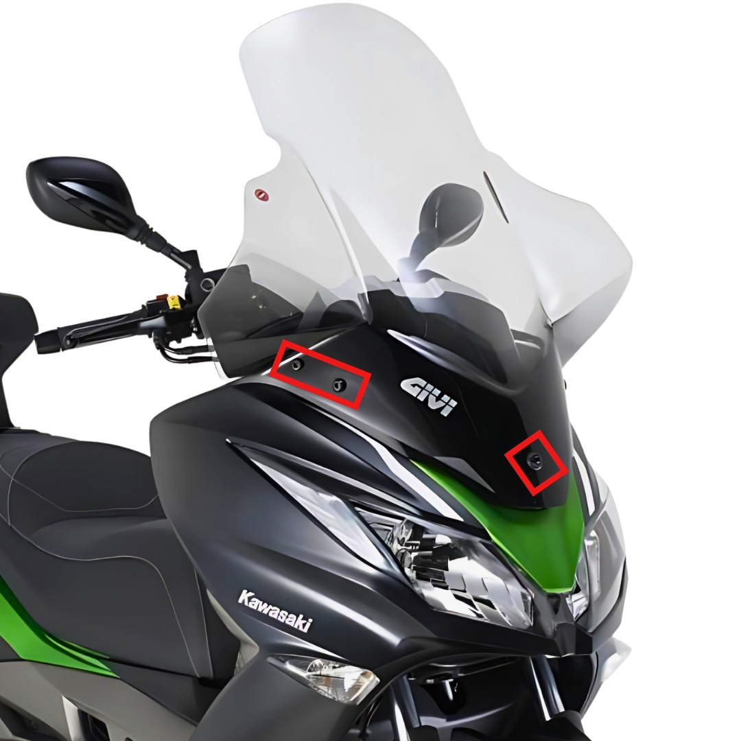 QUESTO KIT È IDEALE PER MOTOCICLISTI CHE DESIDERANO MIGLIORARE LA PROTEZIONE AERODINAMICA DELLA LORO KAWASAKI J300 CON UN CUPOLINO KAPPA TRASPARENTE ORIGINALE, ASSICURANDO UN FISSAGGIO SICURO E SENZA COMPROMESSI.