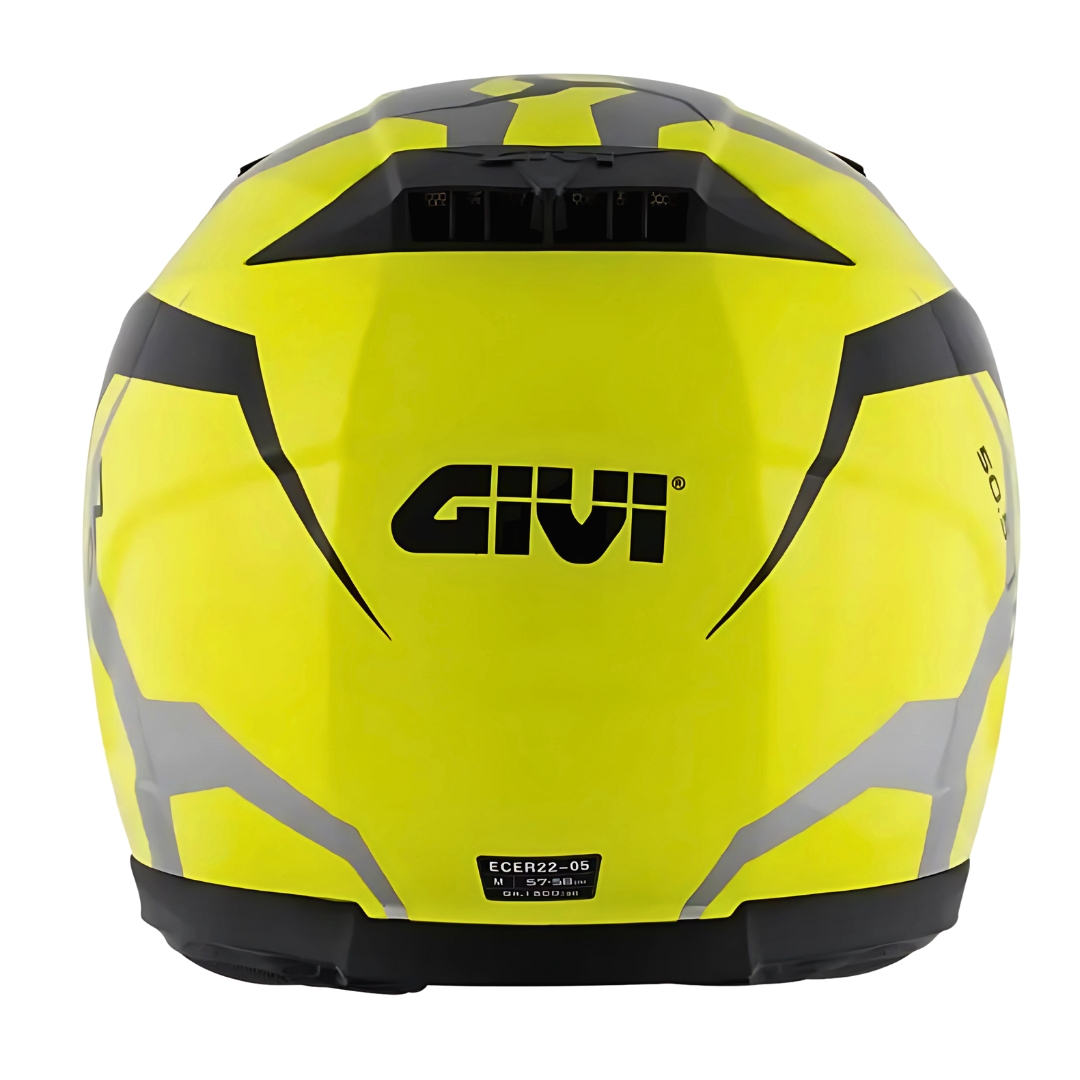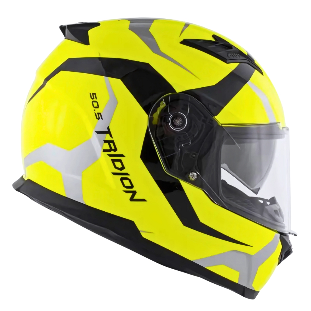 IL CASCO GIVI 50.5 TRIDION VORTIX TAGLIA M (58 CM) NELLA LIVREA NERO SU GIALLO È UN INTEGRALE IN MATERIALE TERMOPLASTICO AD ALTA RESISTENZA.