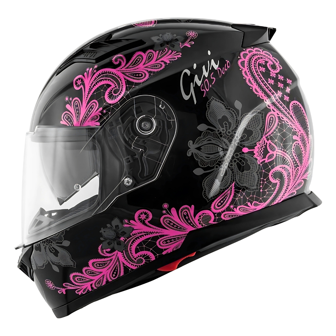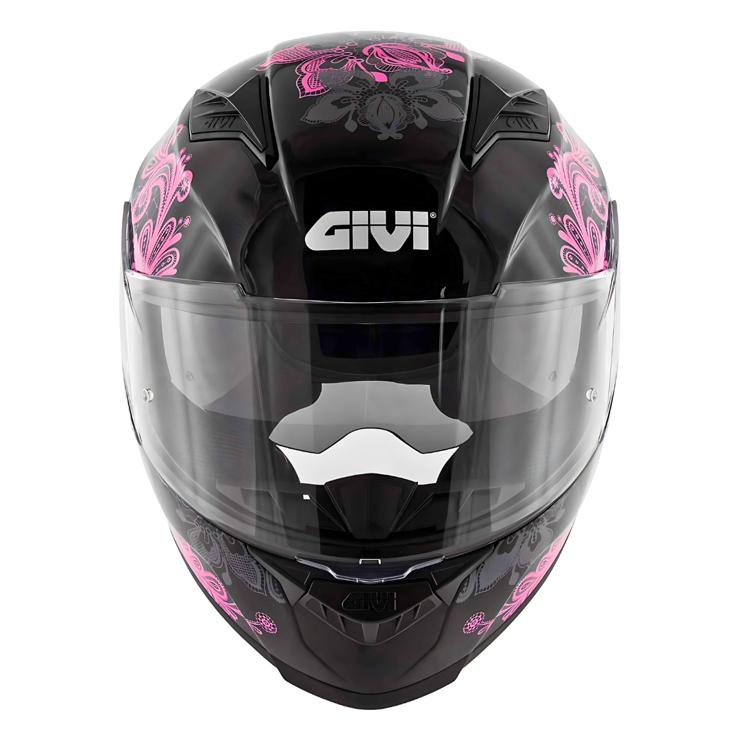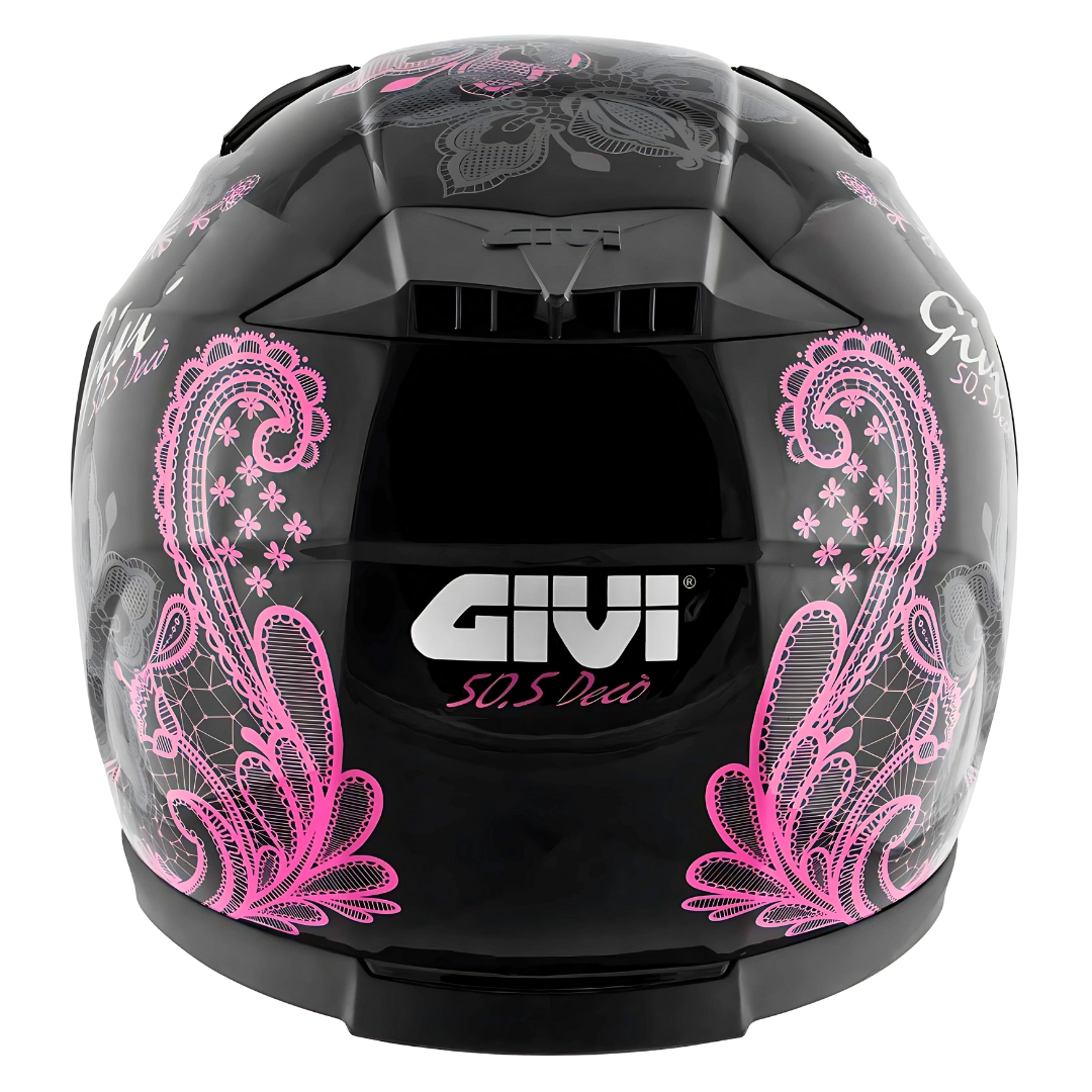 IL GIVI 50.5 TRIDION DECÒ IN COLORAZIONE NERO/FUXIA RAPPRESENTA L'EVOLUZIONE DELLA GAMMA INTEGRALE GIVI DEDICATA AL PUBBLICO FEMMINILE, COMBINANDO TECNOLOGIA AVANZATA E DESIGN DISTINTIVO.
