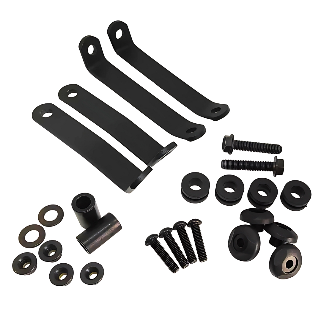 IL KIT INCLUDE GLI ATTACCHI NECESSARI PER UN MONTAGGIO SICURO E STABILE SUL VEICOLO, GARANTENDO UNA FACILE INSTALLAZIONE. È IMPORTANTE VERIFICARE LA COMPATIBILITÀ ESATTA CON IL PROPRIO MODELLO PRIMA DELL'ACQUISTO.