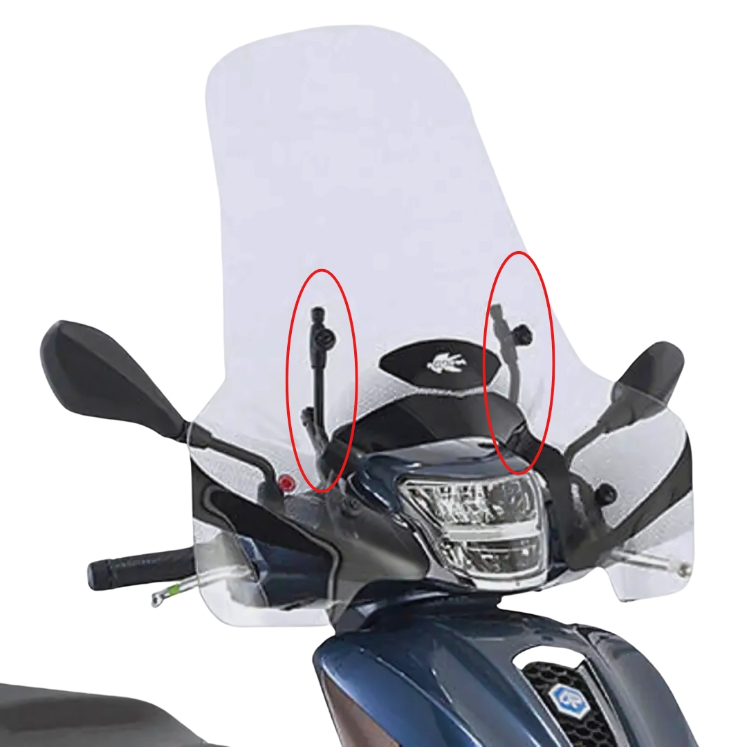 QUESTO KIT ASSICURA UN FISSAGGIO STABILE E SICURO DEL PARABREZZA, GARANTENDO COMPATIBILITÀ PERFETTA CON I PUNTI DI MONTAGGIO ORIGINALI DELLO SCOOTER.