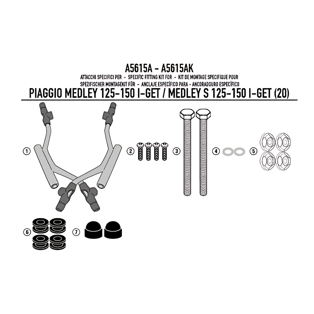 IL KAPPA MOTO A5615AK È UN KIT DI ATTACCHI SPECIFICO PROGETTATO PER MONTARE IL PARABREZZA KAPPA 7057AK SUI MODELLI PIAGGIO MEDLEY 125 I-GET, MEDLEY 150 I-GET E MEDLEY S 125/150 I-GET DAL 2020.