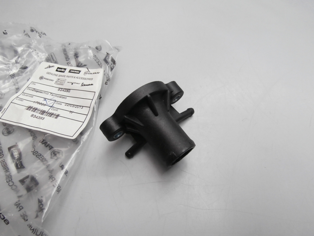 RICAMBIO ORIGINALE PIAGGIO, CODICE 834393, PROGETTATO SPECIFICAMENTE PER I MODELLI PIAGGIO CON MOTORIZZAZIONI 125, 200 E 250 CC. QUESTO COPERCHIO TERMOSTATO, CON LA SUA CARATTERISTICA A 2 TUBI, ASSICURA UN CORRETTO FUNZIONAMENTO DEL SISTEMA DI RAFFREDDAMENTO DEL TUO SCOOTER.